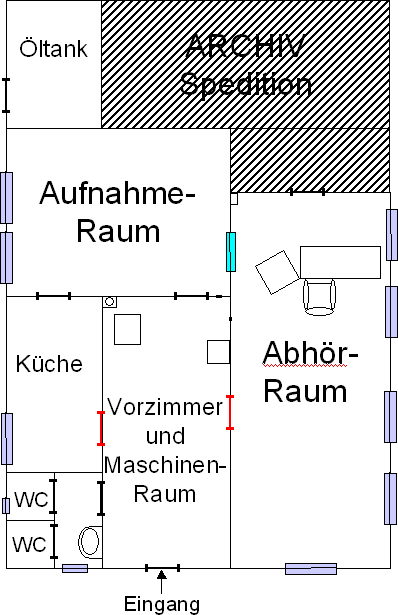 Grundriß des Studios. Er ist rein nach Gefühl gemalt (mit Power Point,