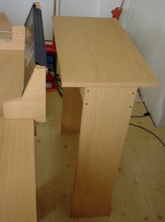 Heute nur ein kleiner Update, denn es ist nichts Großartiges passiert. Ich habe einen kleinen Tisch geschreinert, der hinter dem Mixertisch steht, und auf dem die Computer-Monitore platziert werden. Ich habe das Ding eigentlich nur aus Resten zusammengeschustert, darum sieht es nicht besonders toll aus. Aber da wo es steht, sieht es eh keiner.