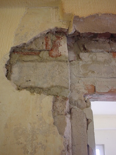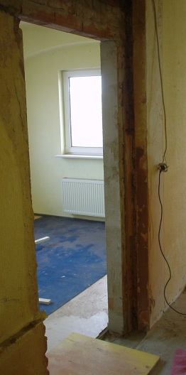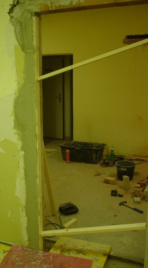 Auf der Baustelle angekommen, habe ich als erstes das große Loch neben dem Sturz von Tür 1 aufgefüllt. Das war wieder ein ziemliches Gestöpsel und hat mich einiges an Nerven gekostet, aber schließlich und endlich ist es dann doch ganz gut geworden.